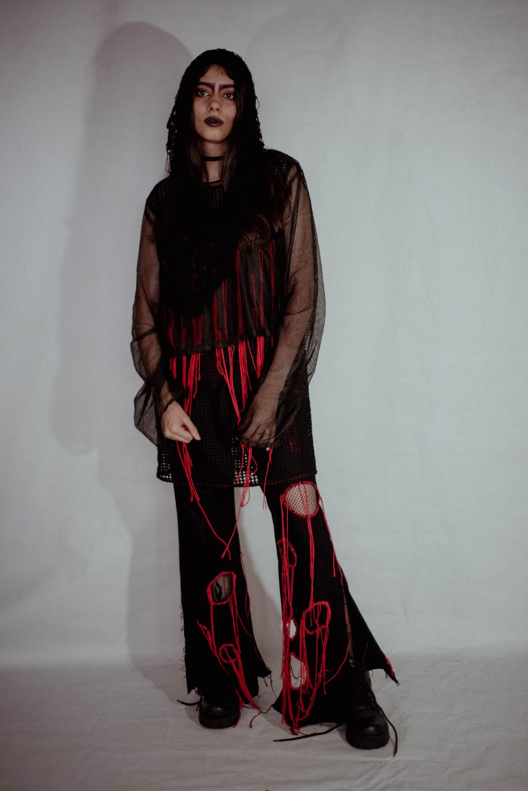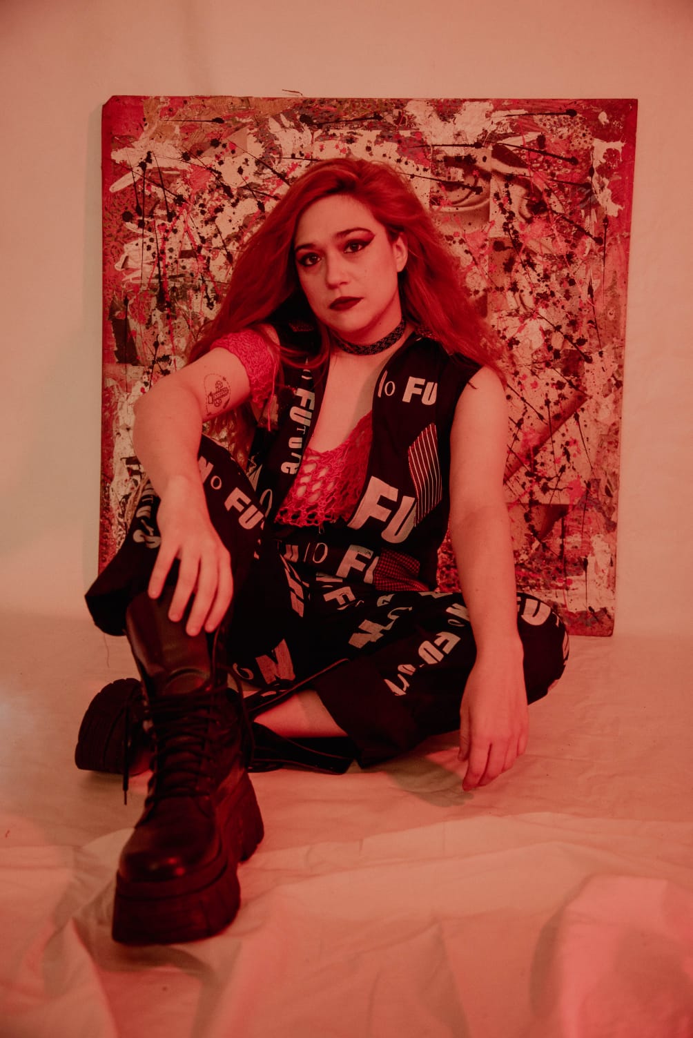 El punk, para Florencia, sigue siendo un espacio de rebeldía. No solo estética, también política: desafiar la velocidad de la moda, la homogeneización de cuerpos y estilos, y habitar un espacio creativo propio. “Jugar con esta estética es romper un poco con todo lo que nos vienen a imponer… habitar el mundo de la moda lenta, de lo hecho a mano, es habitar un espacio de rebeldía ante el mundo del fast fashion y del capitalismo atroz que nos impulsa a consumir sin pensar un segundo en nuestras necesidades”, reflexiona. Sus prendas cuestionan los cuerpos hegemónicos, estilos impuestos y al mismo tiempo invitan a habitar la moda con libertad.