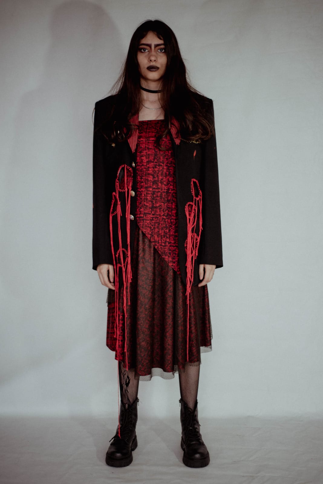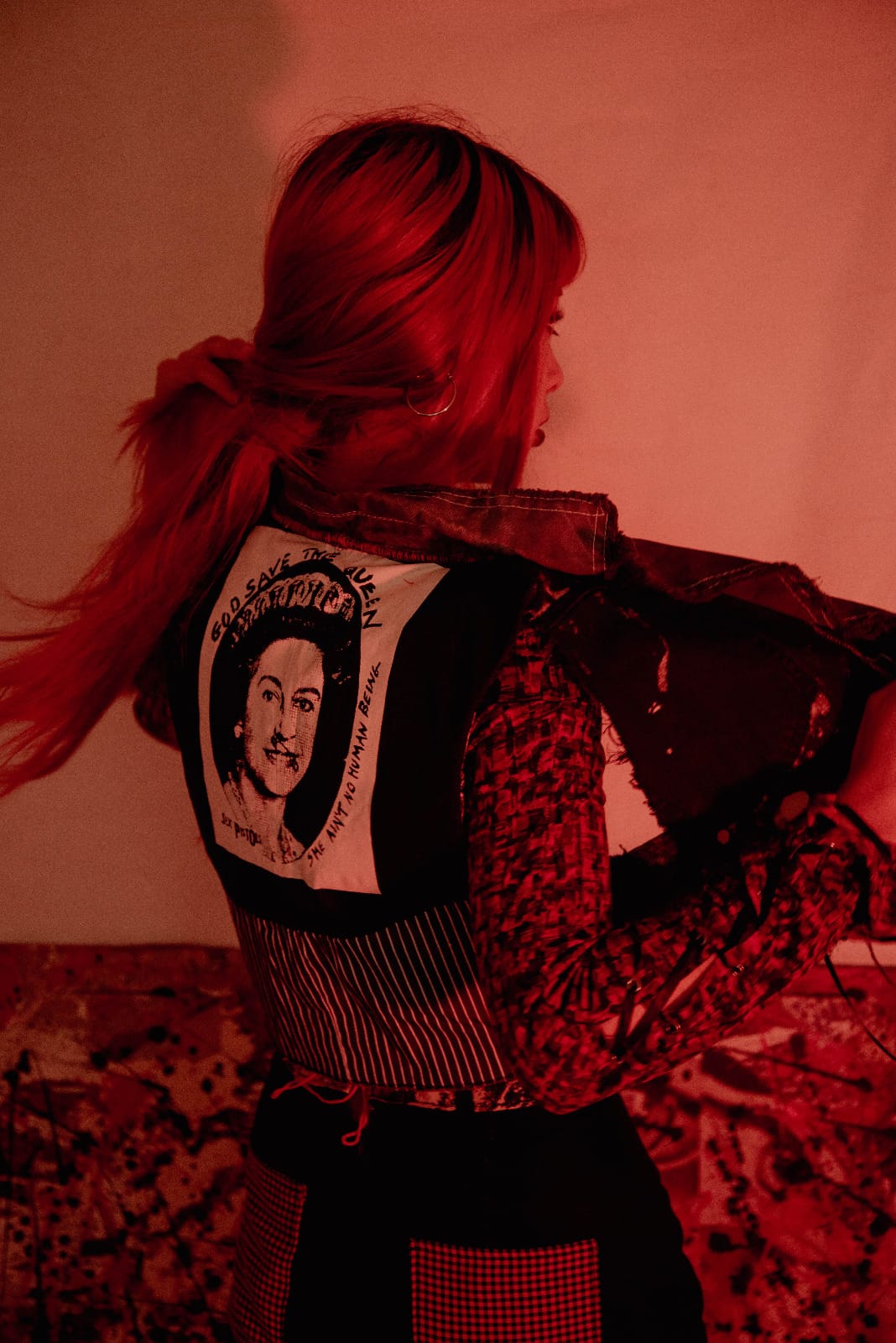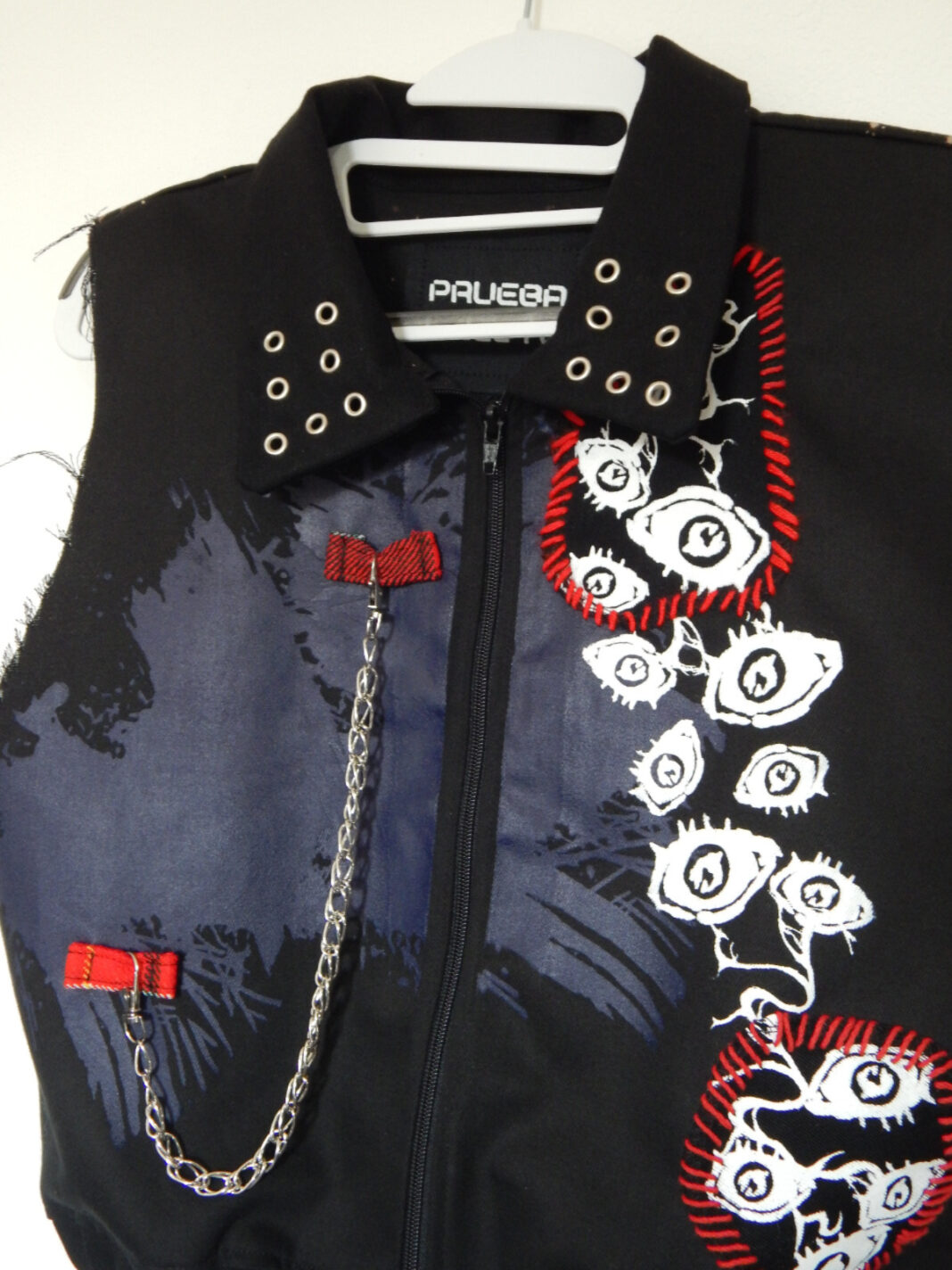 El punk, en su propuesta, es tanto estética como actitud. “La crisis política que comenzamos a atravesar cuando estaba por recibirme… me llevó a volver al punk y a sus ideales”, dice. Pero el punk no llega solo: llega junto a la reflexión sobre el fast fashion, la apertura de importaciones y la necesidad de crear con materiales reciclados y producción lenta. “Producir de una forma mucho más lenta a la que nos tiene acostumbrados el mercado es una manera de resistir”, asegura.