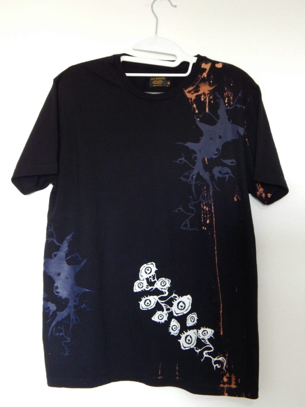 Sus materiales elegidos son el denim y la gabardina, con un alto porcentaje de algodón, para que cada prenda tenga durabilidad y calidad. La serigrafía, un recurso familiar de la mano de su hermano, es uno de los pilares de su identidad: “Desde la colección final de la carrera comencé a utilizar la serigrafía en mis diseños de la mano de él”. Cada estampa, cada mancha de lavandina, cada rotura y tabla es parte de un proceso cuidadoso y consciente.