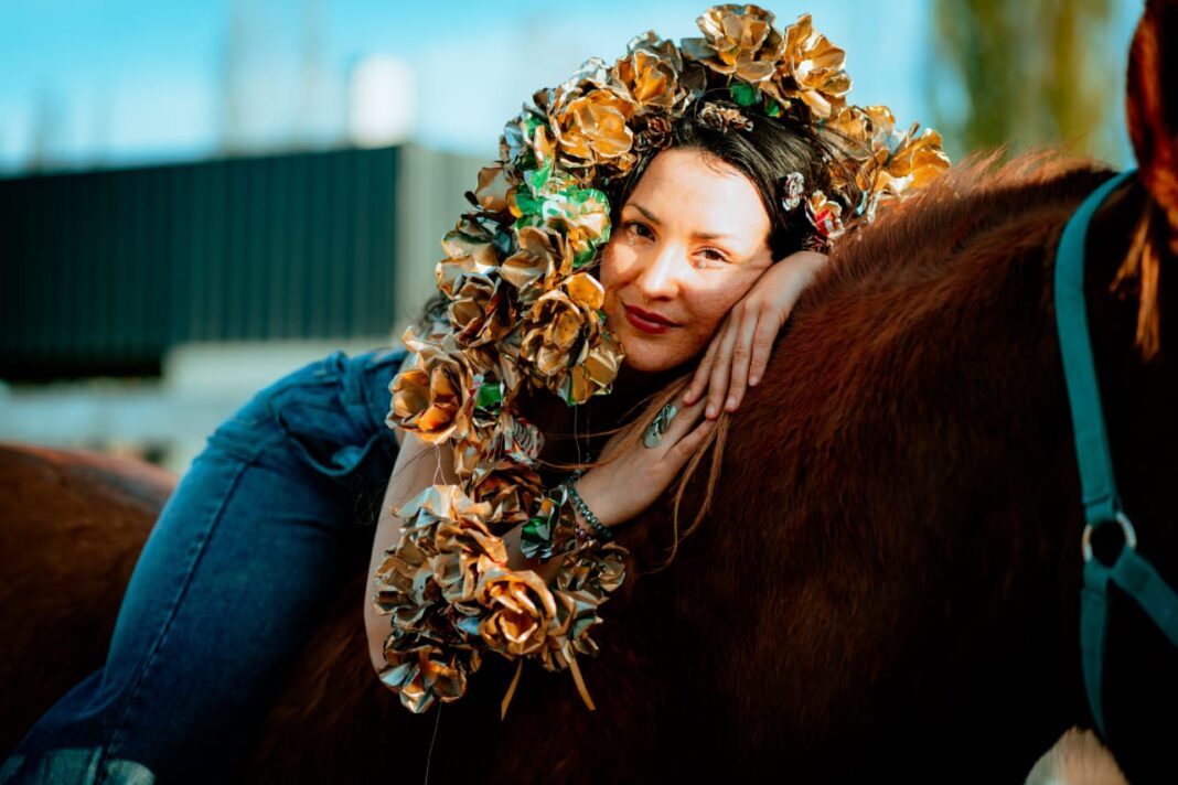 La vi por primera vez en una foto. Una rosa dorada, hecha de lata, nacida del metal y no de la tierra. Era brutal y delicada a la vez. Me detuve. Volví a mirar. El perfil decía “Unicornia”. No sabía quién era, pero algo en esa imagen me hablaba de resistencia, de belleza que no pide permiso. La contacté por redes. Quería saber más. Quería entender cómo alguien podía convertir lo descartado en ritual.