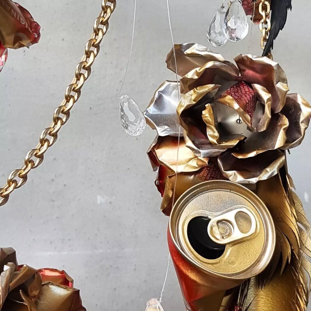 Julieta me respondió con generosidad. Me abrió las puertas de su mundo: un espacio donde el aluminio reciclado se transforma en jardines dorados, donde cada rosa es una ofrenda. “Creo que el estilo visual es una consecuencia de operaciones filosóficas y poéticas que son el alma de la obra más allá de su apariencia… le llamamos ‘el aura del arte’: es la esencia, y se configura en el estilo”